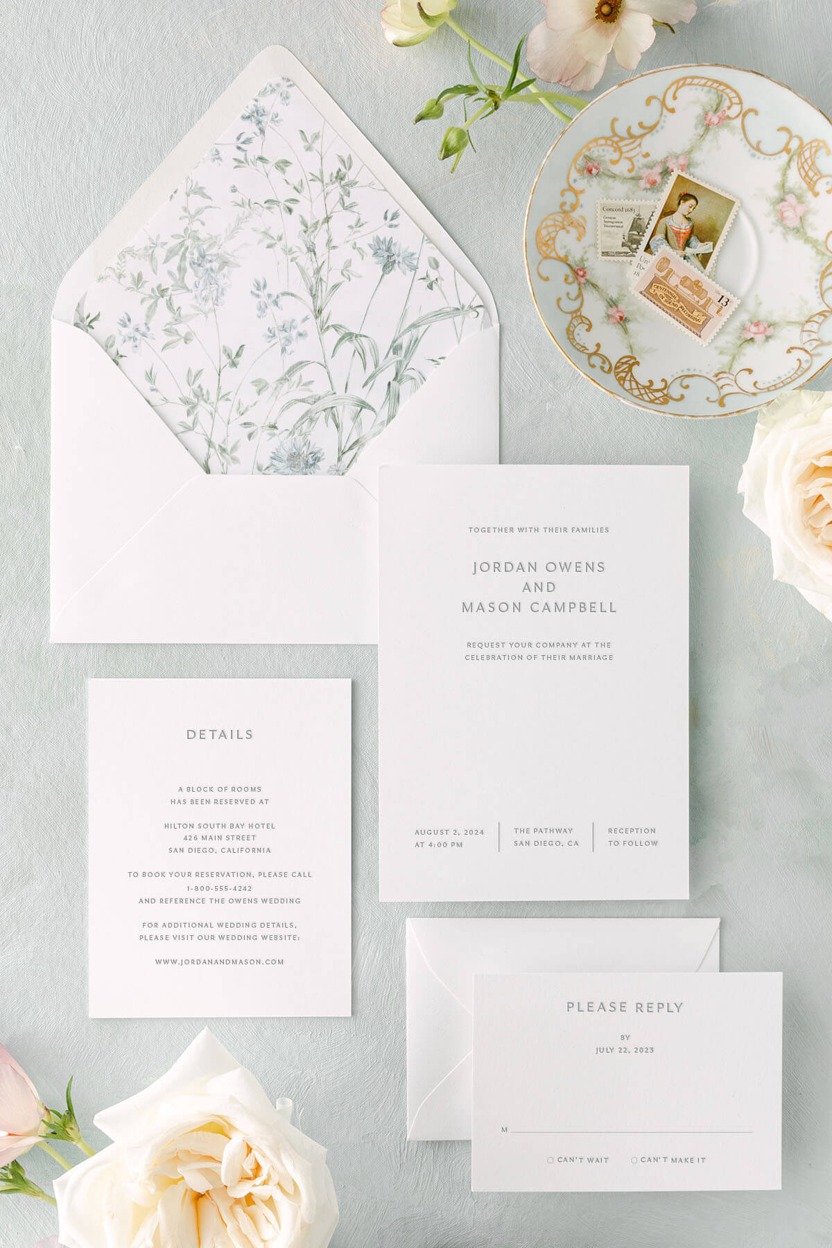 Starts from $1105 per 50 invitations. Add a touch of sophistication to your special day with our elegant wedding invitation card design. These invites are perfect for couples looking for a timeless and refined aesthetic. Personalize them to match your unique style and wedding theme, and complete the look with our Jordan Wedding Collection for a cohesive and personalized touch on your big day. Enjoy complimentary ground shipping on all orders.
