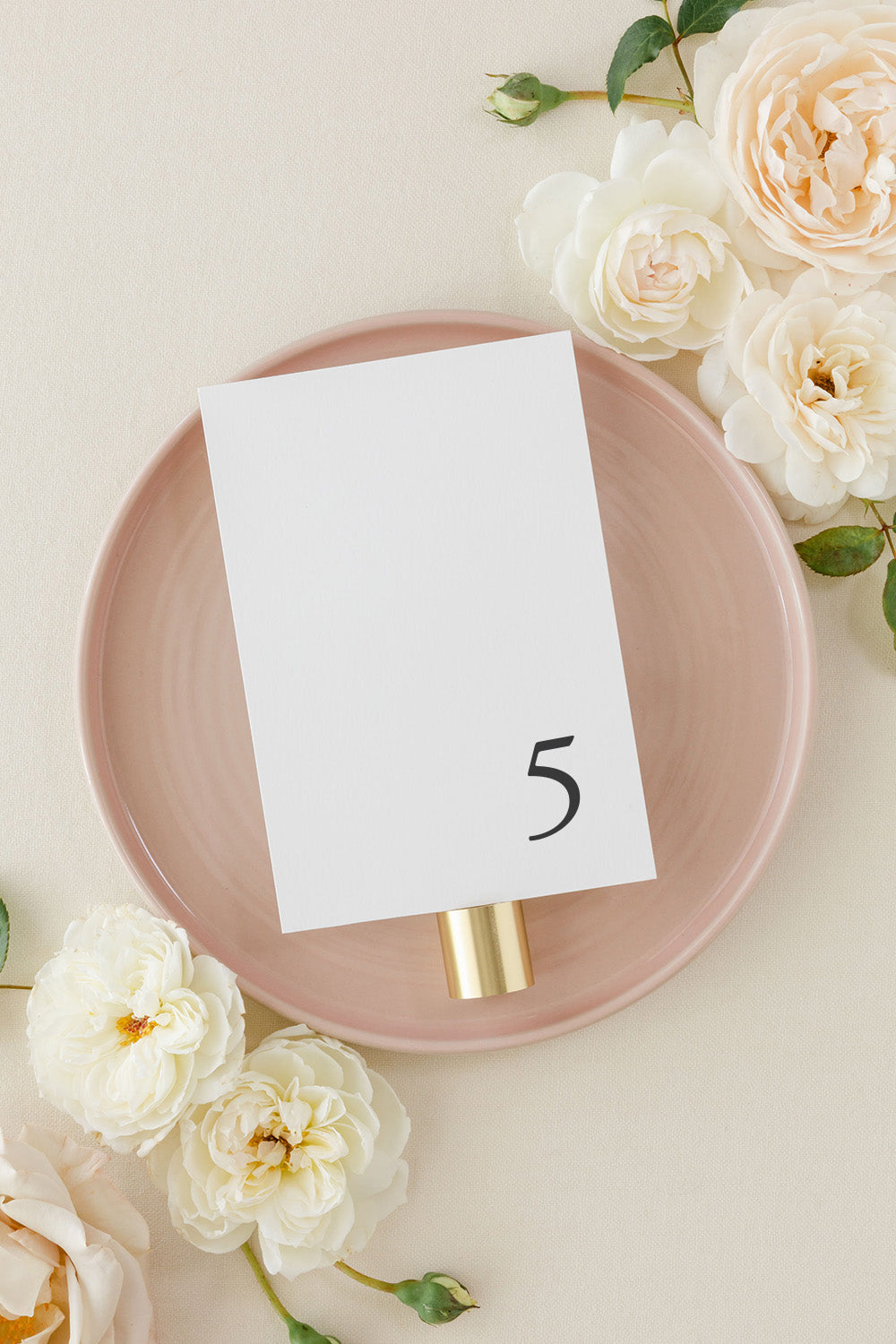 Starts from $45 per 10 cards. Create a sophisticated and stylish atmosphere at your wedding with our Modern Wedding Table Numbers. These sleek, numbered cards will add a touch of elegance to your reception tables, making it easy for guests to find their assigned seats. Say goodbye to confusion and hello to a beautifully organized event.
