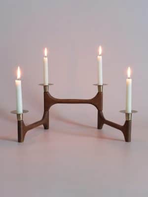 The Articulating Wood and Gold Taper Candle Holder blends mid-century-inspired design with modern versatility. Crafted from warm wood and sleek gold-finished metal, this piece offers a sculptural silhouette that's both functional and beautiful. Its articulating arms allow for a variety of configurations—stretch it wide for a long table centerpiece or fold it inward for a more compact display. In addition, the four candle holders accommodate standard taper candles, making it easy to change the mood from casual to elegant. Whether you're hosting a dinner party or creating a quiet, cozy moment, this piece adapts effortlessly. The Articulating Wood and Gold Taper Candle Holder blends mid-century-inspired design with modern versatility. Crafted from warm wood and sleek gold-finished metal, this piece offers a sculptural silhouette that's both functional and beautiful. Its articulating arms allow for a variety of configurations—stretch it wide for a long table centerpiece or fold it inward for a more compact display. In addition, the four candle holders accommodate standard taper candles, making it easy to change the mood from casual to elegant. Whether you're hosting a dinner party or creating a quiet, cozy moment, this piece adapts effortlessly. For example, pair it with ivory tapers for a clean, minimalist look, or add bold colored candles from our Evoke Candle Collection for a pop of seasonal color. Because the design is both dynamic and timeless, it complements modern, mid-century, or minimalist interiors with ease. The this taper candle holder is more than a centerpiece—it's a statement. Fits Four Standard Taper Candles Warm Tones and Modern Form Suit Multiple Decor Styles Adjustable Arms Allow for Custom Styling Dimensions: 31.5in L x 2.5in W x 8in H (when extended)