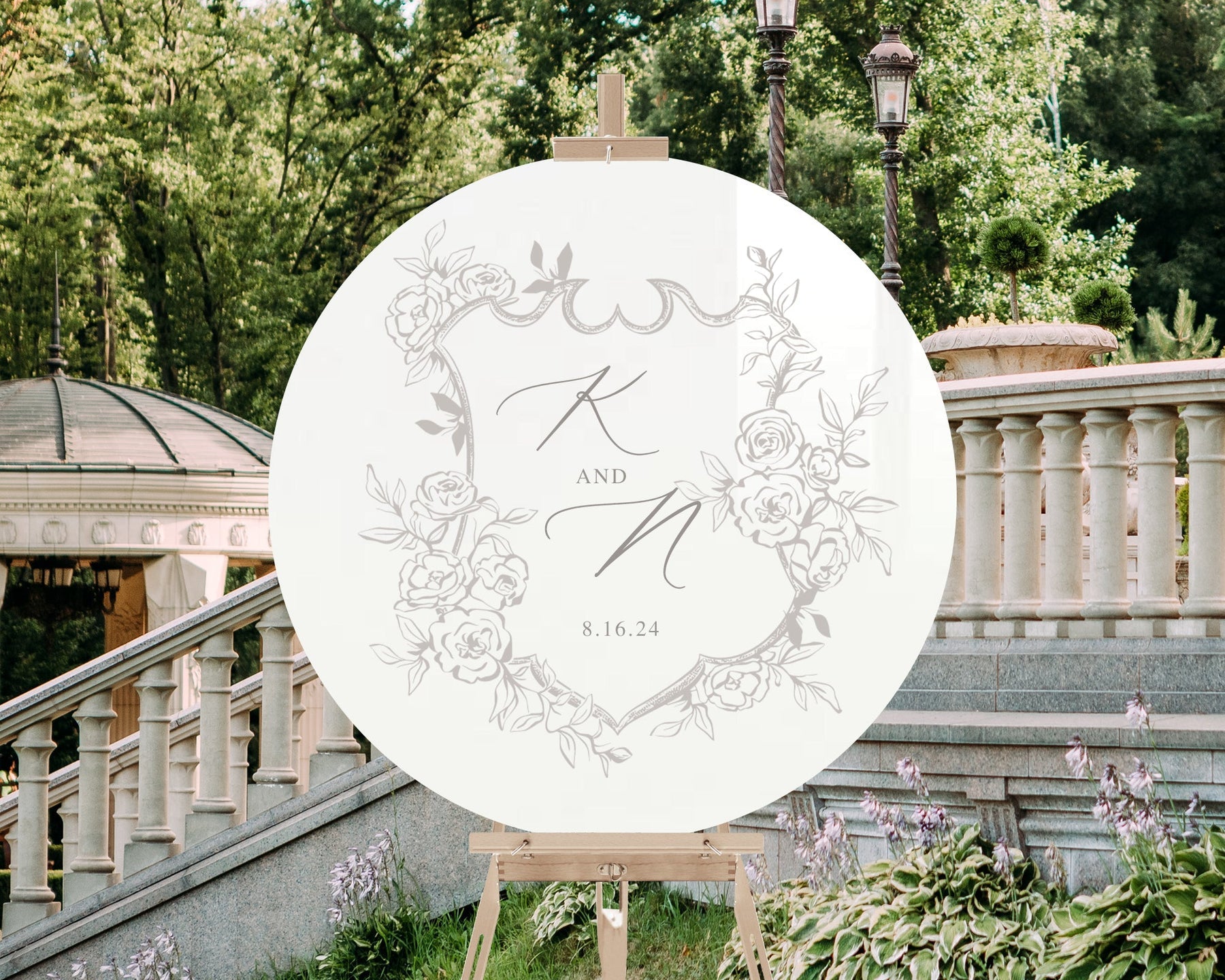 Vintage Crest Round Acrylic Wedding Welcome Sign