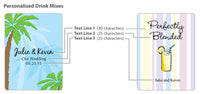Features and Facts: Color(s): Variety of Colors Materials: Lemonade Mix Details: Single serving drink pouches. with premium lemonade mix. Approximately 12 months of shelf life. Stickers are personalized and instructions are on the back on how to mix the pouch contents to create a delicious drink. Packaging Dimensions: 4"w x 5.5"h Selling Unit: Each Minimum Quantity Without Personalization: N/A Minimum Quantity With Personalization: 24 Assembly Required: Easy assembly with self-adhesive labels.