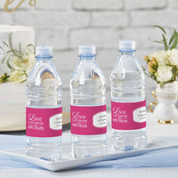 Features and Facts: Color(s): Hot Pink, Purple, Silver, Turquoise, Pink, Light Blue, Lilac, Navy, Black, Gold, Red, White, or Mint. Materials: Adhesive sticker (not waterproof). Details: Available in many designs, color options, and fonts. Suggested application: remove store label from a water bottle, make sure the bottle is dry, apply personalized label where store label was located. Water bottles not included. Dimensions: 8.5" w x 2" h Selling Unit: Set of 12 Minimum Quantity Without Personalization: N/A Minimum Quantity With Personalization: 2 Sets of 12 (24 total) Assembly Required: Some customer assembly required.
