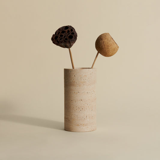 About the Travertine Vase: The Travertine Vase is a petite vessel that blends classical design and contemporary style. Made from authentic travertine, the unique veining and earthy tones create a one-of-a-kind piece. Travertine is not watertight and this small vase is best paired with dried stems. Product Dimensions: Dimensions: height 5.50"� x diameter 2.90"� Top Neck Opening: 2.25"� Stone Weight: 2.60 lbs About the Travertine Stone Series: Hand-finished: made in small batches Limited edition: limited production and restocks Sustainable gift packaging: secured in recyclable, white box Naturally unique: color/size may vary due to variances in travertine stone Care: wipe with damp cloth Not watertight: travertine stone is porous and cannot hold water
