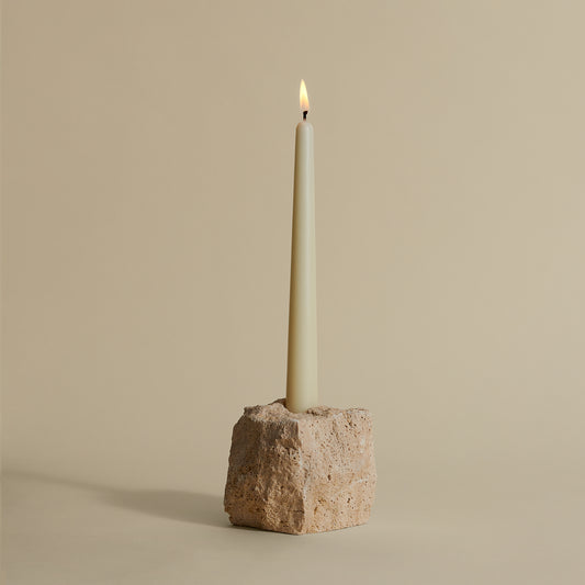 About the Medium Travertine Candlestick Holder: Carved from a single block of natural travertine stone, the Medium Candlestick Holder is both functional and decorative. Product Dimensions: Dimensions: height 3.00"� x diameter 3.00"� Top Neck Opening: 1.00"� Stone Weight: 2.00 lbs Recommended Taper Candle Diameter: 0.90"� Candle holder sold individually without candle Dimensions/weight vary due to hand-crafted process About the Travertine Stone Series: Hand-finished: made in small batches Limited edition: limited production and restocks Sustainable gift packaging: secured in recyclable, white box Naturally unique: color/size may vary due to variances in travertine stone Care: wipe with damp cloth Not watertight: travertine stone is porous and cannot hold water