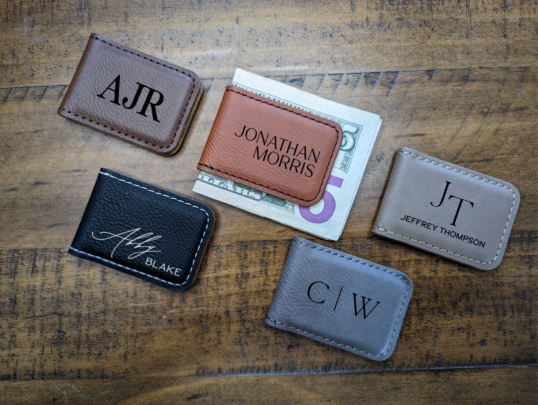 Personalized Leatherette Wallet Money Clip. 7 Colors. 9 Design Choices