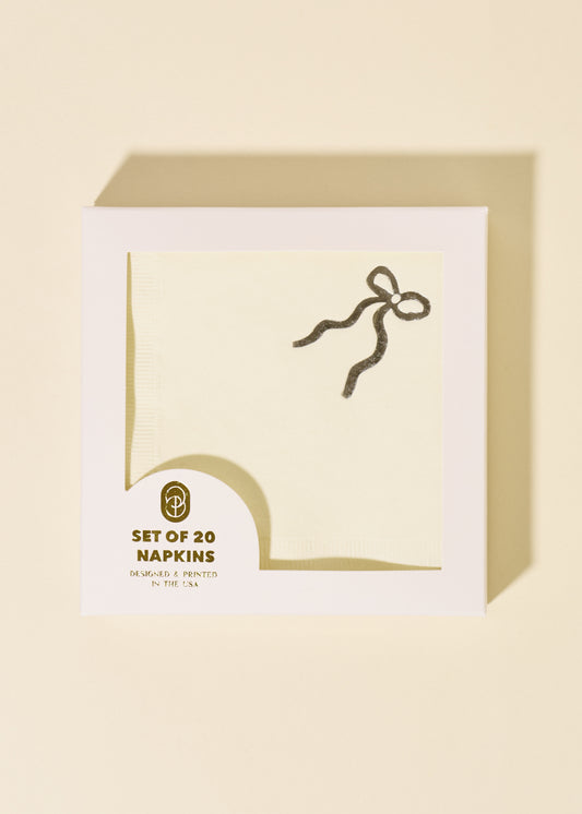 Elevate your next gathering with these elegant cocktail napkins, featuring a refined silver bow on a creamy background€”perfect for adding a touch of sophistication to every sip and snack. With their versatile style, these 3-ply napkins fit seamlessly into any event, from intimate dinners to lively cocktail parties. The set of 20 napkins, measuring 5 x 5 inches, is designed for everything from drinks to appetizers and those Instagram-worthy moments. Packaged in a chic, plastic-free white box, they make an ideal hostess gift or an elegant addition to your own entertaining collection.