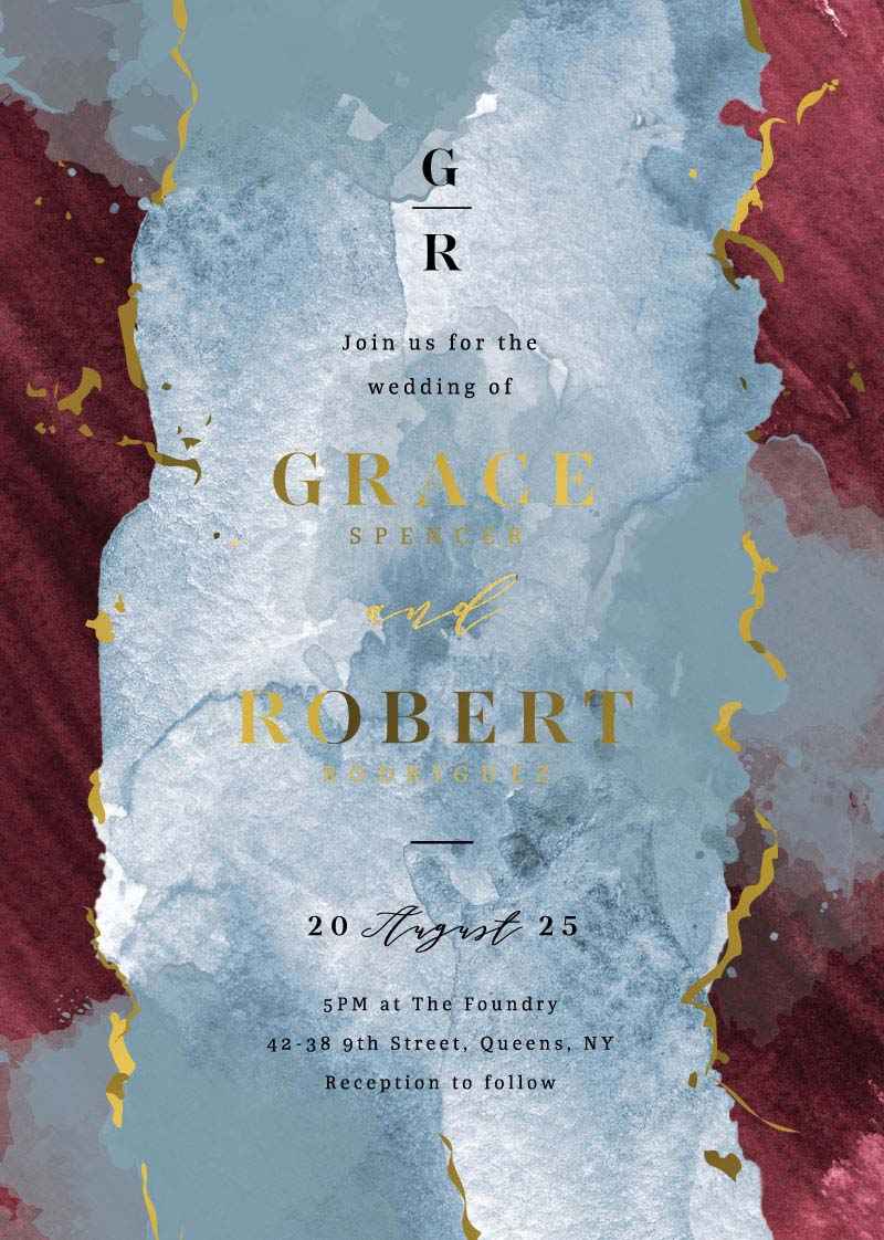 Burgundy Blue Wedding Invitations by Yunita Y.
