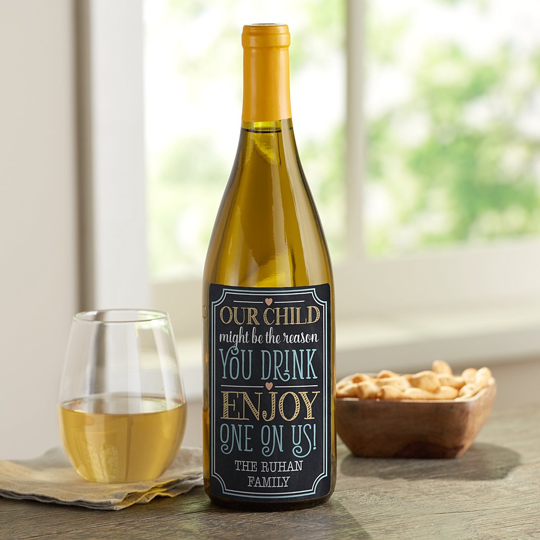 A seriously funny thank you to the teachers, babysitters, relatives and the rest of the “village” you count on, day in and day out. Made of paper with adhesive backing Measures 3.5"x5" Sold as set of 4 Personalize with any 2 line message up to 15 characters each Bottle not included