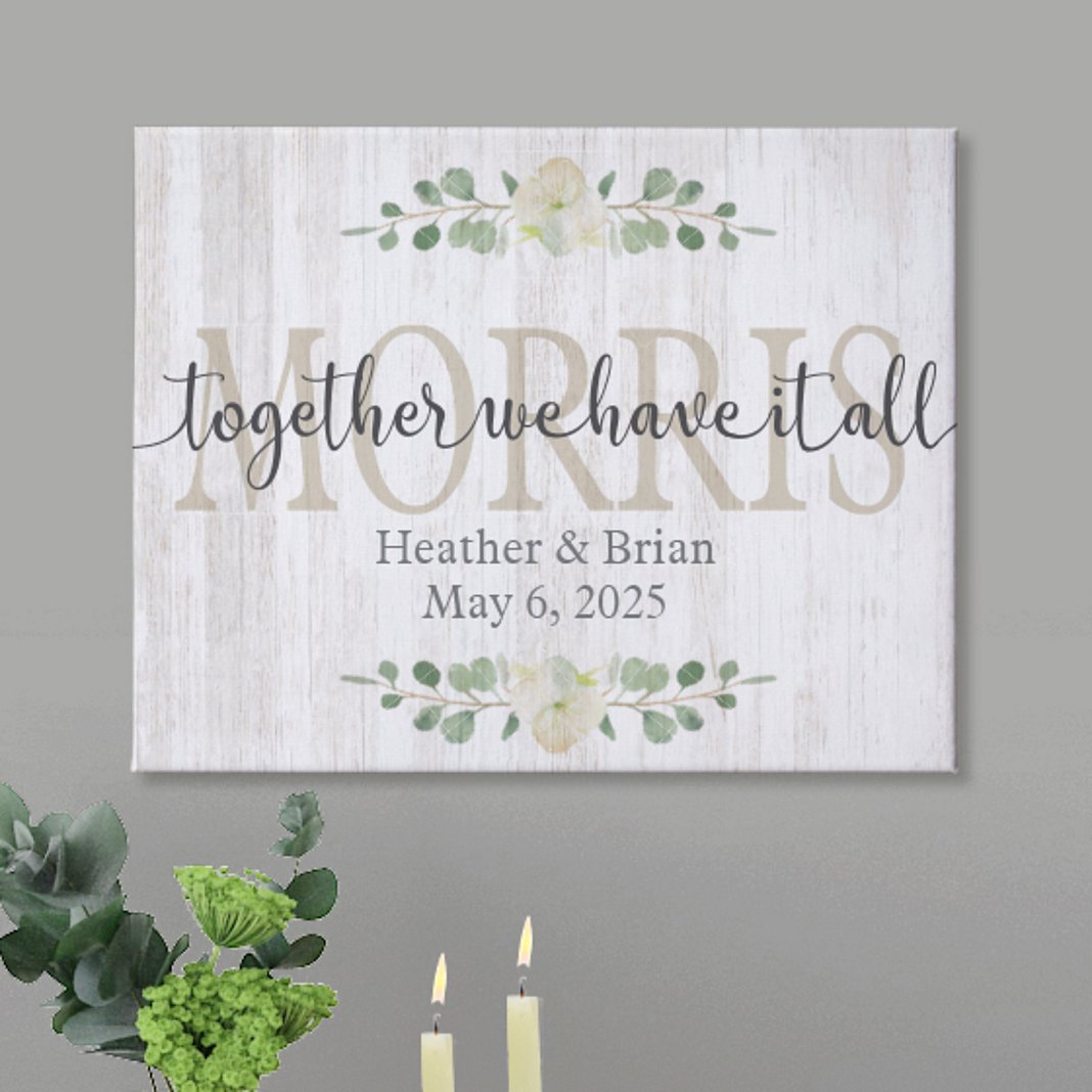 It's what feeds your soul and gives you strength—because that's what family is all about. When you have each other, everything else comes easy. Canvas is stretched over a solid wood frame Sawtooth hanger included Personalize with any name up to 12 characters and any 2 line message up to 40 characters each Item cannot be gift boxed Due to size and packaging requirements, item will ship separately from other items in your order