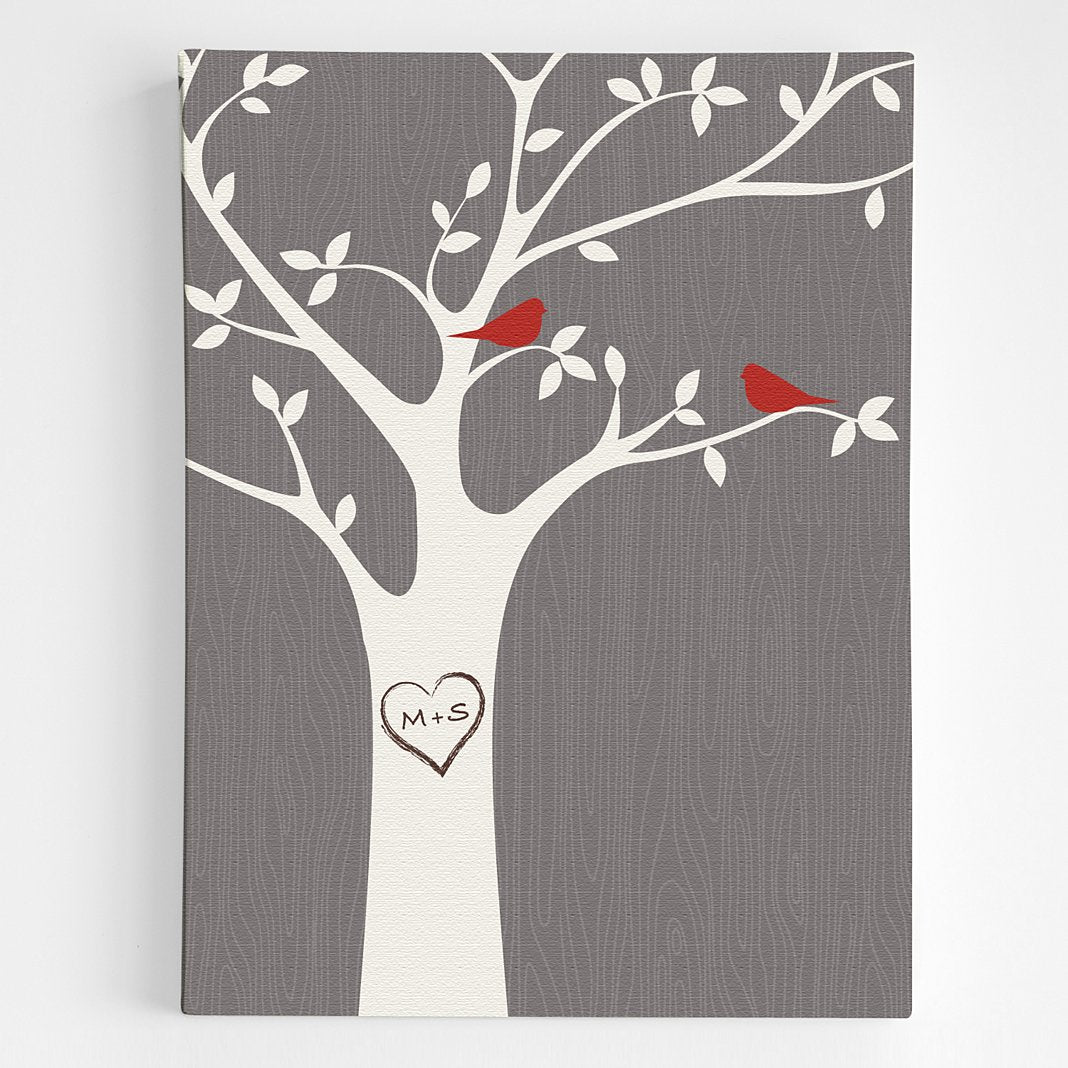 Make your mark; make it enduring. Standing tall and proud, trees have for generations served as the perfect canvas for devoted couples to profess love meant to last a lifetime. This enduring sentiment is adoringly symbolized in our stylized art featuring an elegant tree forever touched with your couples love. Exclusively from RedEnvelope. Canvas is stretched over a solid wood frame Sawtooth hanger included Framed art is Available in espresso, black or white Measures 11"x14" Available in 3 sizes: Standard wrap 18"x24" or Premium gallery wrap: 12"x16" or 18"x24" Choose blue, ivory or gray graphics Personalize with 2 initials "+" will automatically appear Item cannot be gift boxed Due to size and packaging requirements, item will ship separately from other items in your order
