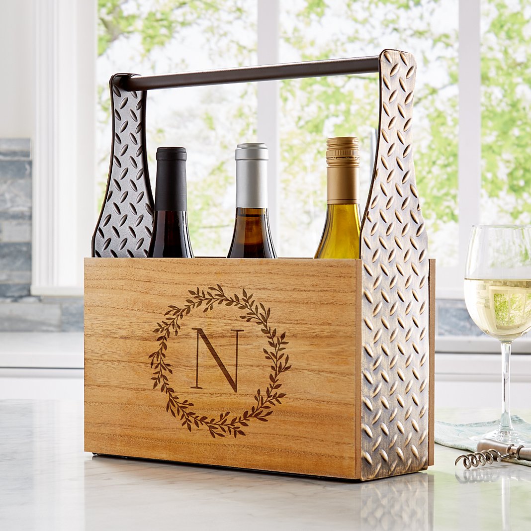 Rustic charm and functionality is at your service. With the capacity to carry up to 3 standard wine bottles, this is your go-to for every event you attend. Made of wood veneer with metal handle Measures 12.5"Wx5"Dx14.75"H Carries 3 standard wine bottles