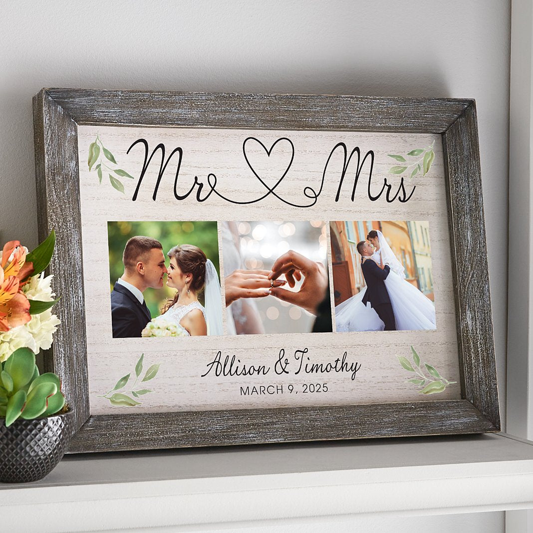 For the one that will eat the pickle off your plate. Who knows just how you like your morning coffee. Your one and only! Your favorite memories of your special day will be featured forever in this custom photo frame. Personalize with three photos and any 2-line message, up to 30 characters each line Barnwood frame features a wood outer frame and MDF wood insert Measures 12"Hx16"Wx1.5"D Sawtooth hanger on the back of frame for easy hanging Gift box not available