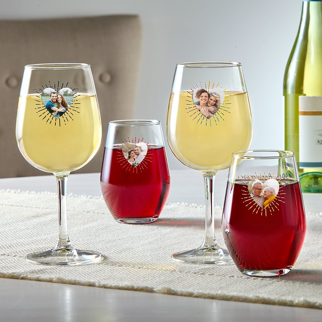 When you're ready to stop and smell the rosé…this personalized glass will have you on cloud wine. Upload your favorite photo and add an optional message up to 16 characters on up to 4 lines Choose from 4 color options - Black, Gold, Red or Rainbow Available in stemmed and stemless wine glass Stemmed glass holds 12.75 oz., stemless holds 11.75 oz. Sold individually or as a set of 2 Dishwasher safe Gift box not available