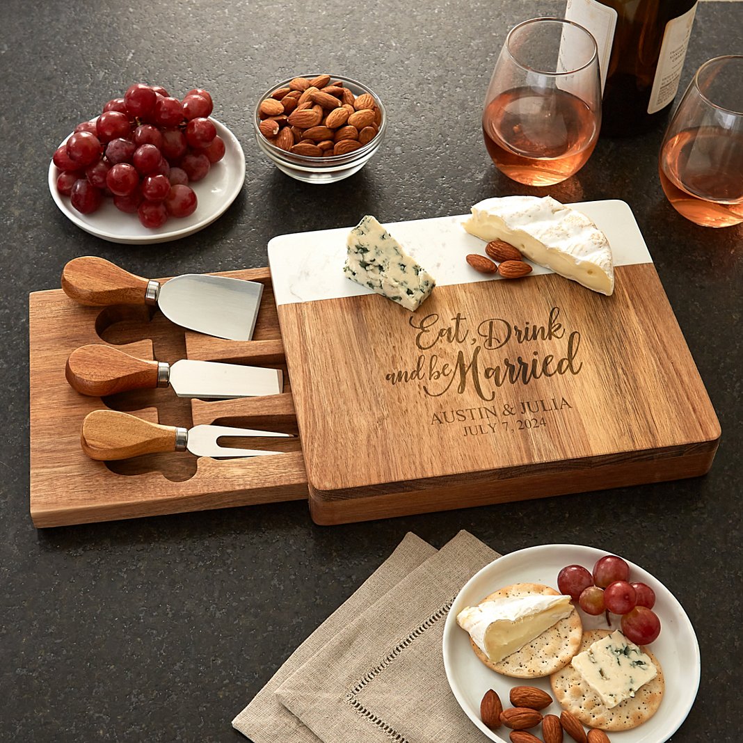 Eat, Drink & Be Married Marble Wood Cheese Board