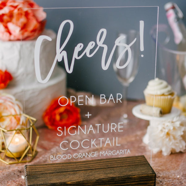 "Cheers!" Open Bar & Signature Drink Acrylic Sign