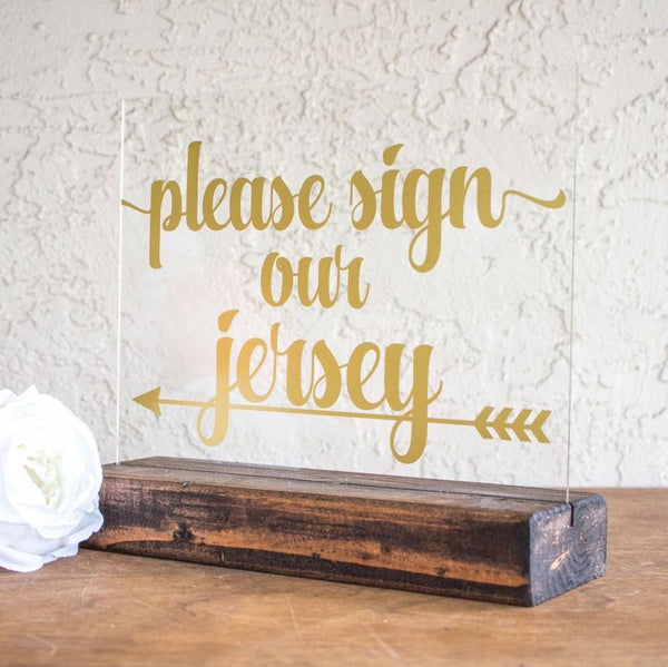 "Please Sign Our Jersey" Jersey Guest Book Acrylic Wedding Sign