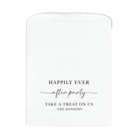 Celebrate your big day with a personal touch using our custom full-color digitally printed treat bags! These beautifully designed bags are perfect for filling with sweet treats, wedding favors, or small gifts for your guests. Made from eco-friendly, durable materials, these bags are as functional as they are stunning. Whether you're having a classic, rustic, or contemporary wedding, these treat bags will add a charming and thoughtful detail to your celebration. SIZE & FEATURES - These paper treat bags are lined with wax paper, food-safe and can be filled with items like candies, cookies, trail mix, etc. - Bag size: approximately 5.75" x 8" - Digitally printed READY TO ORDER? Once the item is added to your cart, please leave the following in thePERSONALIZATION section: - Ink Color for Text - Personalization Information - Any other information we need to know PROOFS All proofs are sent within 72 business hours. Your order is held until we hear back from you with approval that all spelling and punctuation is correct. Please note that our orders are immediately placed into production once we receive your approval, and changes cannot be made. A delay in approving your proof WILL delay the production time.