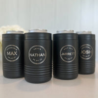 These laser engraved can coolers are engraved in our Reading, Pennsylvania studio. Perfect for a groomsmen gift for your wedding, a special gift for dad, or a just because gift for the favorite guy in your life. They are heat and cold resistant and hold cans and bottles. Simply screw off the rubber top and place the beverage inside. COLOR Black SIZE 3 1/8"(L) x 5 1/4"(H) ITEM: 1 CAN COOLER CLEANING INSTRUCTIONS Not recommended for dishwashers, hand wash only.