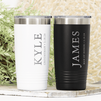 Your bridal party will love their personalized tumblers. These powder coated coffee/cocktail tumblers are laser engraved in our Reading, Pennsylvania studio. No stickers or vinyl to peel or fade! Sizes Available: 20oz Tumbler 30oz Tumbler Clear lid Hand wash only, not recommended for dishwasher Do not microwave Tumblers features double-wall vacuum insulation with a clear lid. It is 2X heat & cold resistant compared to a normal tumblers. Polar Camels are made from 18/8 gauge stainless steel (18% chromium/8% nickel) - also known as Type 304 Food Grade. (Tumblers made in China - Designed and Engraved in our Reading, Pennsylvania studio)