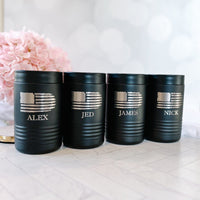 These laser engraved can coolers are engraved in our Reading, Pennsylvania studio. Perfect for a groomsmen gift for your wedding, a special gift for dad, or a just because gift for the favorite guy in your life. They are heat and cold resistant and hold cans and bottles. Simply screw off the rubber top and place the beverage inside. COLOR Black SIZE 3 1/8"(L) x 5 1/4"(H) ITEM: 1 CAN COOLER CLEANING INSTRUCTIONS Not recommended for dishwashers, hand wash only.