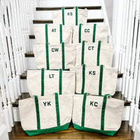 Say hello to your new favorite personalized tote bag! The Personalized Tote Bag is sturdy enough to carry all your necessities and more. This bag features a durable canvas material. But the real beauty lies in the customization. Our range of fonts and thread colors allows you to create a unique look that's entirely your own. So why settle for some boring generic bag? Get yourself one of our monogrammed bags today for a look that's as unique and as fashionable as you are! Plus, it comes innine amazing colors so you can match it perfectly with any outfit! DETAILS SIZE Medium: 12" H X 18" W X 5.5" D Large: 14" H X 25" W X 9" D Material: Canvas Top zip closure with front exterior pocket Contrasting color handles with a 9" handle Interior clip that is great to hang keys