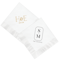 Celebrate the new mr and mrs and add a fun personalized element to your wedding. Perfect for cocktail hour, appetizers, cake, or just add to each place setting for a unique table decoration. Choose from multiple napkin and imprint colors to make these napkins truly unique! SIZES - Cocktail Napkins are approximately 4.75" x 4.75" and 5" x 5" (sizes vary by color) - Luncheon Napkins are approximately 6.25" x 6.25" - Guest Towels are approximately 4.25" x 8.5" ADDITIONAL DETAILS - These napkins are a soft 3 ply - One Imprint Color Only - Recyclable - Made & Printed in the USA - Minimum Order - 25 Napkins