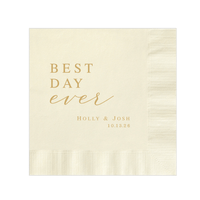 Add a fun personalized element to your wedding with these personalized wedding napkins! Perfect for cocktail hour, appetizers, cake, or just add to each place setting for a unique table decoration. Choose from multiple napkin colors and foil imprint colors to make these napkins truly unique. These are professionally printed in real foil (both shiny and matte options are available). SIZES - Cocktail Napkins are approximately 4.75" x 4.75" and 5" x 5" (sizes vary by color) - Luncheon Napkins are approximately 6.25" x 6.25" - Guest Towels are approximately 4.25" x 8.5" ADDITIONAL DETAILS - These napkins are a soft 3 ply - One Imprint Color Only - Recyclable - Made & Printed in the USA - Minimum Order - 25 Napkins