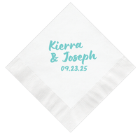 Add a fun personalized element to your wedding with these personalized wedding napkins! Perfect for cocktail hour, appetizers, cake, or just add to each place setting for a unique table decoration. Choose from multiple napkin and imprint colors to make these napkins truly unique! SIZES - Cocktail Napkins are approximately 4.75" x 4.75" and 5" x 5" (sizes vary by color) - Luncheon Napkins are approximately 6.25" x 6.25" - Guest Towels are approximately 4.25" x 8.5" ADDITIONAL DETAILS - These napkins are a soft 3 ply - One Imprint Color Only - Recyclable - Made & Printed in the USA - Minimum Order - 25 Napkins