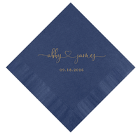 Add a fun personalized element to your wedding with these personalized wedding napkins! Perfect for cocktail hour, appetizers, cake, or just add to each place setting for a unique table decoration. Choose from multiple napkin and imprint colors to make these napkins truly unique! SIZES - Cocktail Napkins are approximately 4.75" x 4.75" and 5" x 5" (sizes vary by color) - Luncheon Napkins are approximately 6.25" x 6.25" - Guest Towels are approximately 4.25" x 8.5" ADDITIONAL DETAILS - These napkins are a soft 3 ply - One Imprint Color Only - Recyclable - Made & Printed in the USA - Minimum Order - 25 Napkins