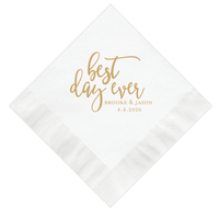 Add a fun personalized element to your wedding with these personalized wedding napkins! Perfect for cocktail hour, appetizers, cake, or just add to each place setting for a unique table decoration. Choose from multiple napkin and imprint colors to make these napkins truly unique! SIZES - Cocktail Napkins are approximately 4.75" x 4.75" and 5" x 5" (sizes vary by color) - Luncheon Napkins are approximately 6.25" x 6.25" - Guest Towels are approximately 4.25" x 8.5" ADDITIONAL DETAILS - These napkins are a soft 3 ply - One Imprint Color Only - Recyclable - Made & Printed in the USA - Minimum Order - 25 Napkins
