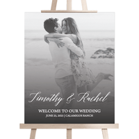 Welcome your guests with a unique welcome sign featuring your favorite photo. Handcrafted from premium materials, this sign features a unique design with an elegant lettering style that will add a touch of class and sophistication to your special day. Whether it's placed near the entrance or used as part of a larger display, this gorgeous Welcome Sign will ensure a warm and inviting atmosphere for all of your loved ones. Material Options Acrylic -1/8" thick Card Stock Print Canvas Digital JPEG How to Display Acrylic 8"x10" & 11"x14" - No frame needed, ready to display 16"x20" & 18"x24" - No stands included, recommended to be displayed on an easel Canvas - No frame needed, displays well on an easel. Not recommended for outdoor use Card Stock - Just frame & display Hardware for hanging not included. Made and printed in the USA