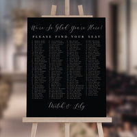Guide your guests to their seats in style with thePersonalized Wedding Seating Chart Sign. This elegant and modern sign features a sleek script design, providing a clear and sophisticated way for guests to find their names and seating assignments. Whether you're hosting an intimate ceremony or a grand celebration, this sign is the perfect addition to your wedding décor, seamlessly blending with any theme. Material Options Acrylic (Clear, Frosted, Glossy White, Glossy Black) - 1/8" thick Card Stock Print Canvas Digital JPEG How to Display Acrylic 16"x20" & 18"x24" - No stands included, recommended to be displayed on an easel Canvas - No frame needed, displays well on an easel. Not recommended for outdoor use Card Stock - Just frame & display Hardware for hanging not included. Made and printed in the USA