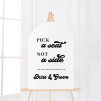 Retro Pick a Seat Not A Side Wedding Ceremony Sign