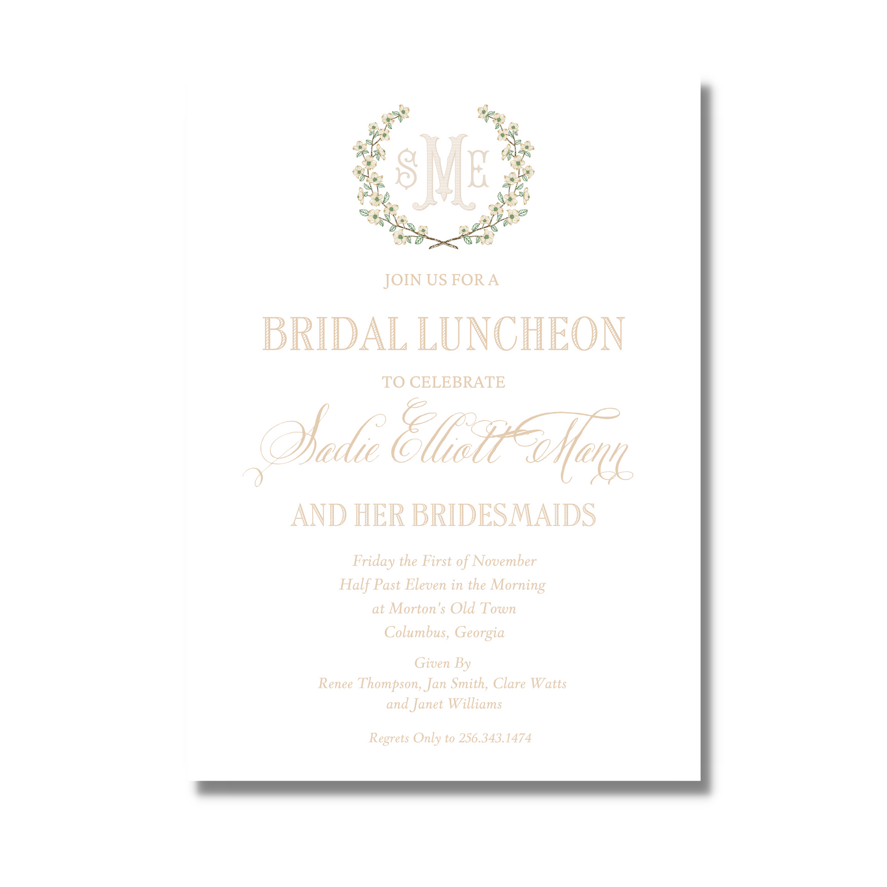 Dogwood Wreath Monogram - Bridal Shower Invite