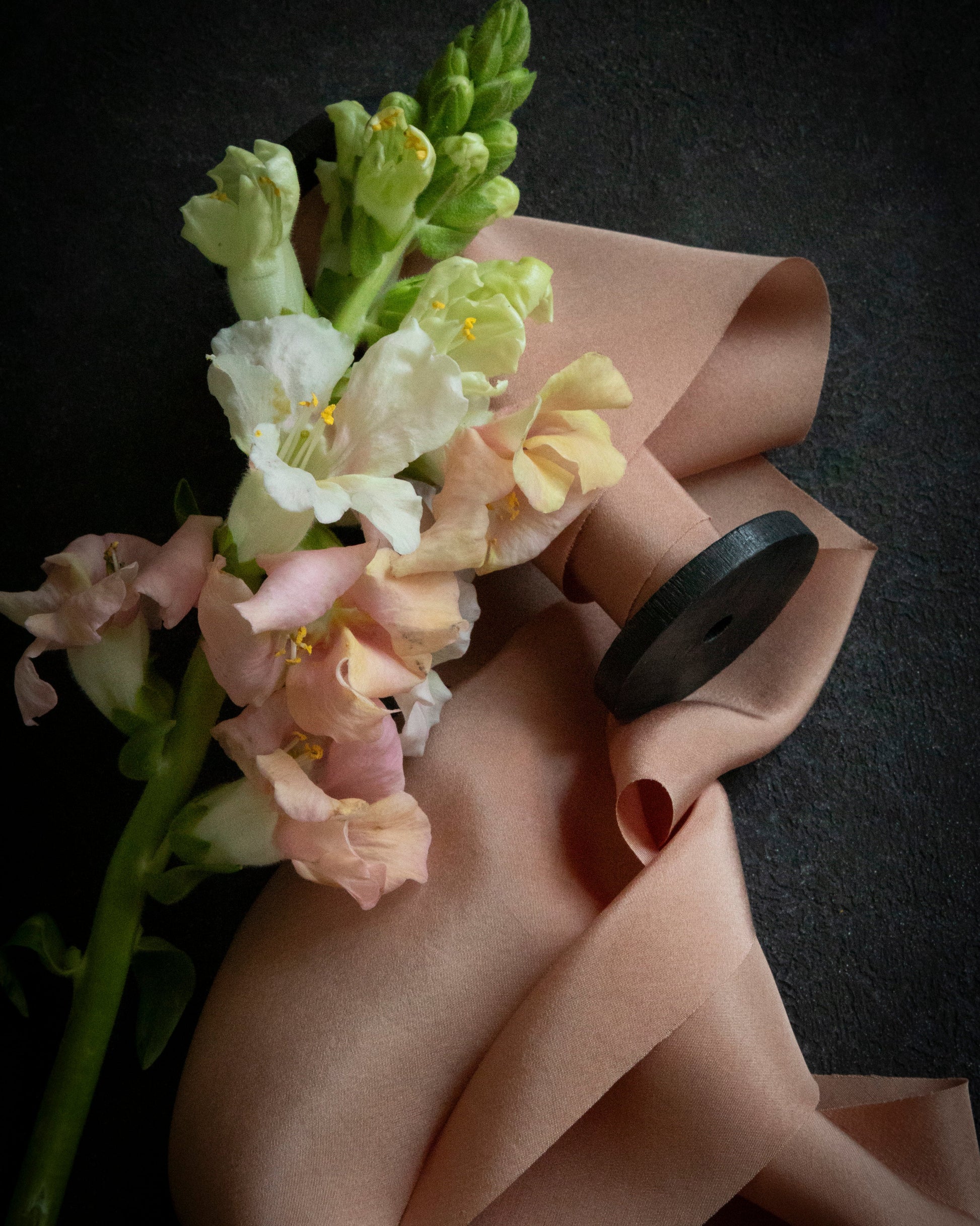 Discover BELLINI, the perfect fusion of peach and pink. With a captivating undertone of pink, this peachy-coral hue effortlessly complements both coral and pink flowers. Organic Silk Ribbon: ethically sourced, naturally dyed, and hand-loomed silk. Crafted from wild-harvested silk, this 12mm ribbonis a luxurious weight that feels slightly lighter than our classic silk ribbons due to the varying production methods. Exclusively made for Silk & Willow, you will only find this level of quality here. Prepare to be amazed by its unparalleled sheen and sumptuous feel. This is not your ordinary silk ribbon - it's a professional-gradesilk ribbon. Delicateedges require careful handling and expertise when wrapping your bridal bouquet. But fear not, for the result will be nothing short of breathtaking. Let your bridal bouquet exude sheer beauty and elegance with this exquisite silk ribbon. Color Sample is approximately 9 inches of 1.5-inch ribbon