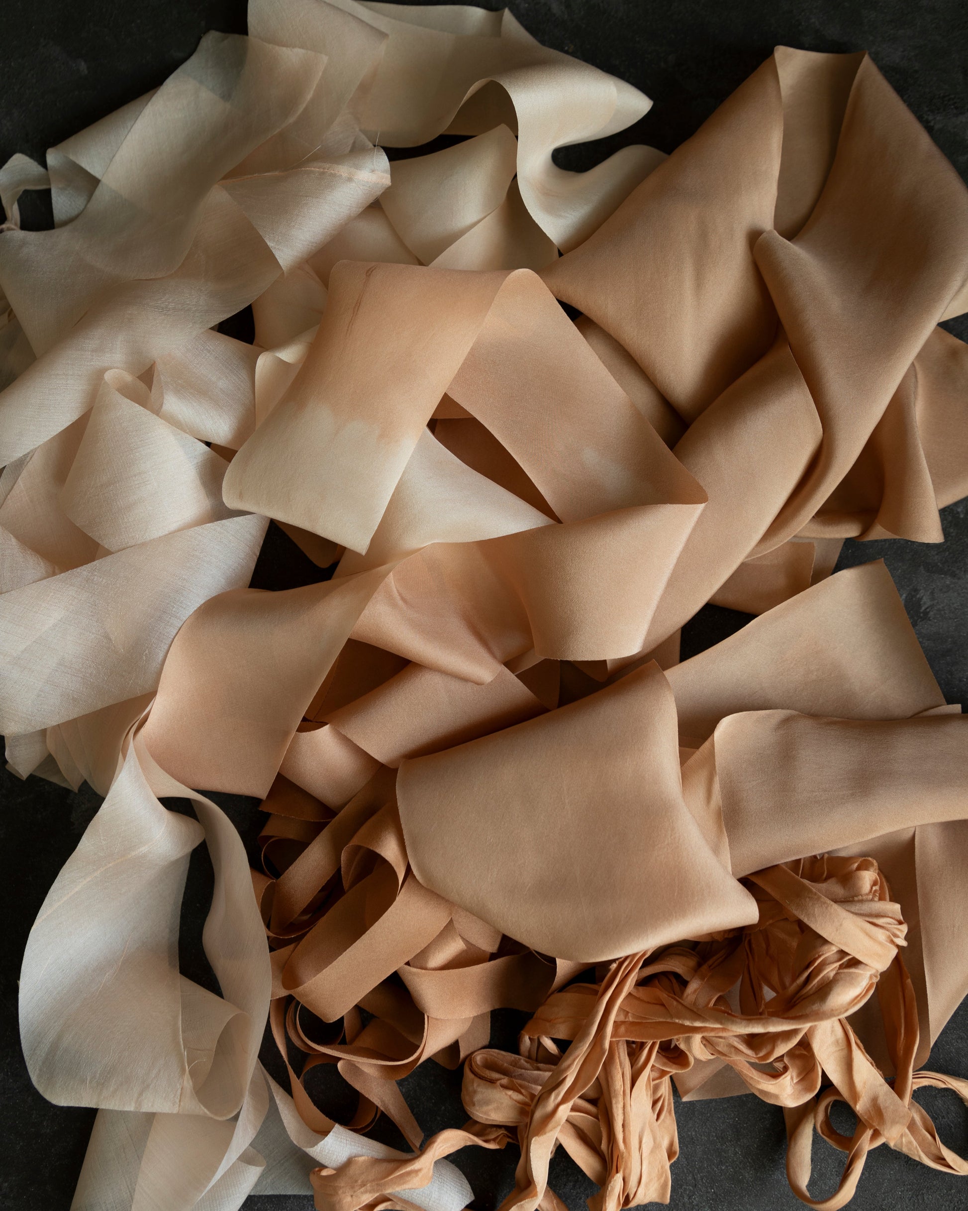 Naturally Dyed Silk Ribbon Bundle / 19 yards of plant-dyed silk ribbons. Each Ribbon is 3 or 5 yards long. Discover the beauty of timeless craftsmanship with our Naturally Dyed Silk Ribbon Bundles. Handpicked from our personal collection and previously used in Silk & Willow styling projects, these ribbons are cherished and loved pieces, which may include rare-limited edition colors from our past collections. Each bundle features a variety of coral and blush hues within a cohesive palette, perfect for adding nature-inspired touches to your creations. Includes our Classic and Tussar silk ribbons. These ribbons are perfectly imperfect! Ribbons come folded in our silk organza bag and may require light ironing. Why You'll Love Them: A Curated Palette: Experience a harmonious selection of colors that complement each other beautifully. Sustainable Crafting: Perfect for eco-conscious creators, these previously loved and re-purposed. Versatile Uses: Ideal for bridal bouquets, gift wrapping, candle displays, and so much moreyour imagination sets the limit! Major Savings: Indulge in high-end silk ribbons at a fraction of their original price, a true treasure for any stylist or crafter. These bundles are perfect for florists, wedding stylists, and creative DIY enthusiasts looking to elevate their projects. WHAT'S INCLUDED: You receive everything pictured. Approx. 19 yards of plant-dyed silk ribbon. Ribbon widths vary. Comes bundled in our handmade 100% silk bag.. Due to the major discount exact specifics can not be provided. Sold as-is.
