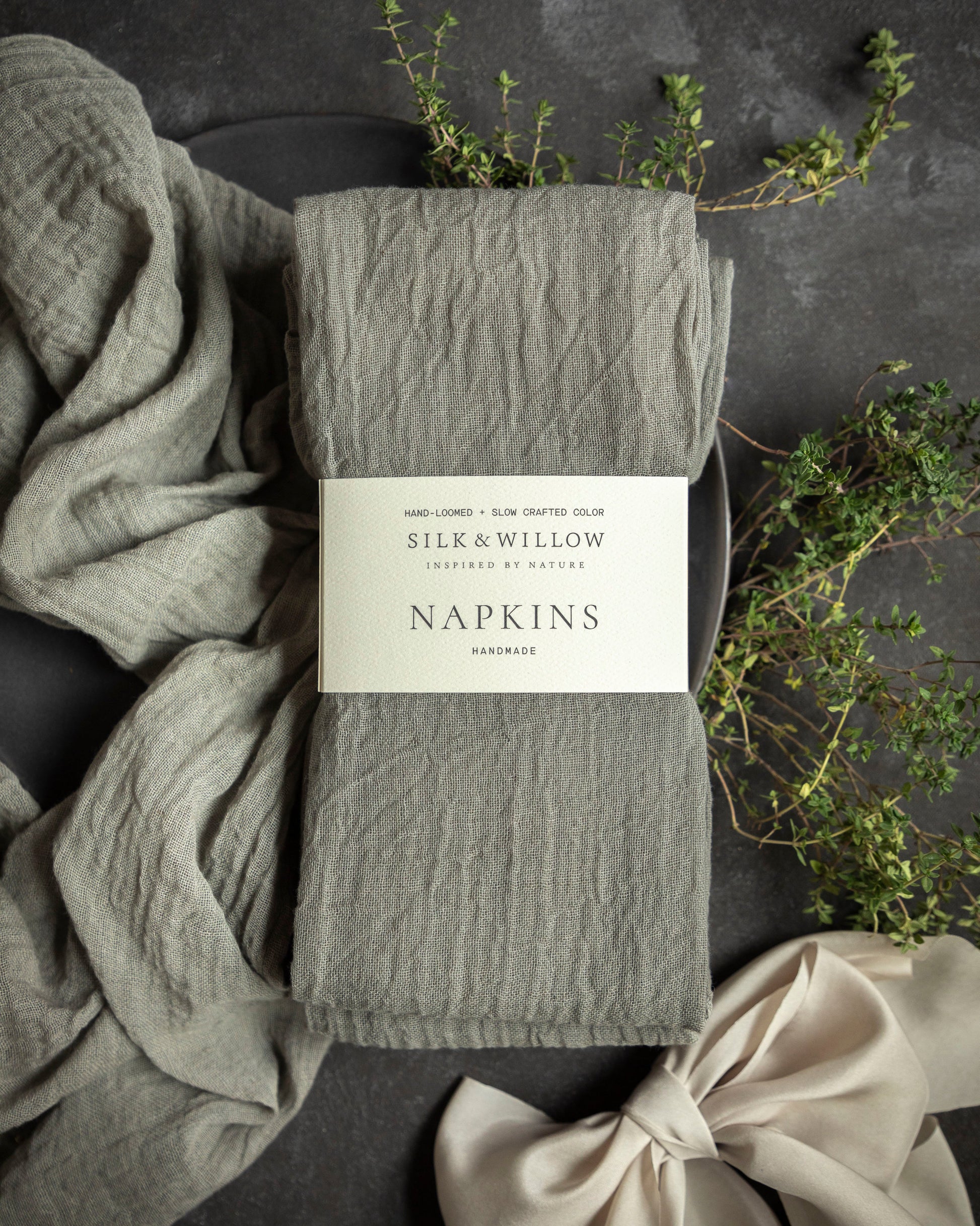 Elevate your table setting with the timeless beauty of our French Gray Napkins. Each napkin is hand-loomed by skilled artisan weavers, preserving the cherished tradition of handcraftsmanship. Infused with naturally derived, plant-based dyes that are sustainably grown and gathered. French Gray is a soft, muted shade with subtle undertones of green. This hue can vary slightly depending on the lighting, sometimes appearing warmer or cooler, making it a wonderful choice for creating a serene and timeless atmosphere, and transforming any dining experience into a memorable occasion. Treat your guests to the artistry of sustainable beauty and curate a table that tells a story of care, craftsmanship, and refinement. These napkins have a hand-sewn hem and are made from hand-spun cotton which gets softer with each washing. Hand-loomed tight-weave cotton | Slow-crafted color. Approx. size: 19 x 28 inches For 100+ Napkins, contact us for a custom order at: orders@silkandwillow.com