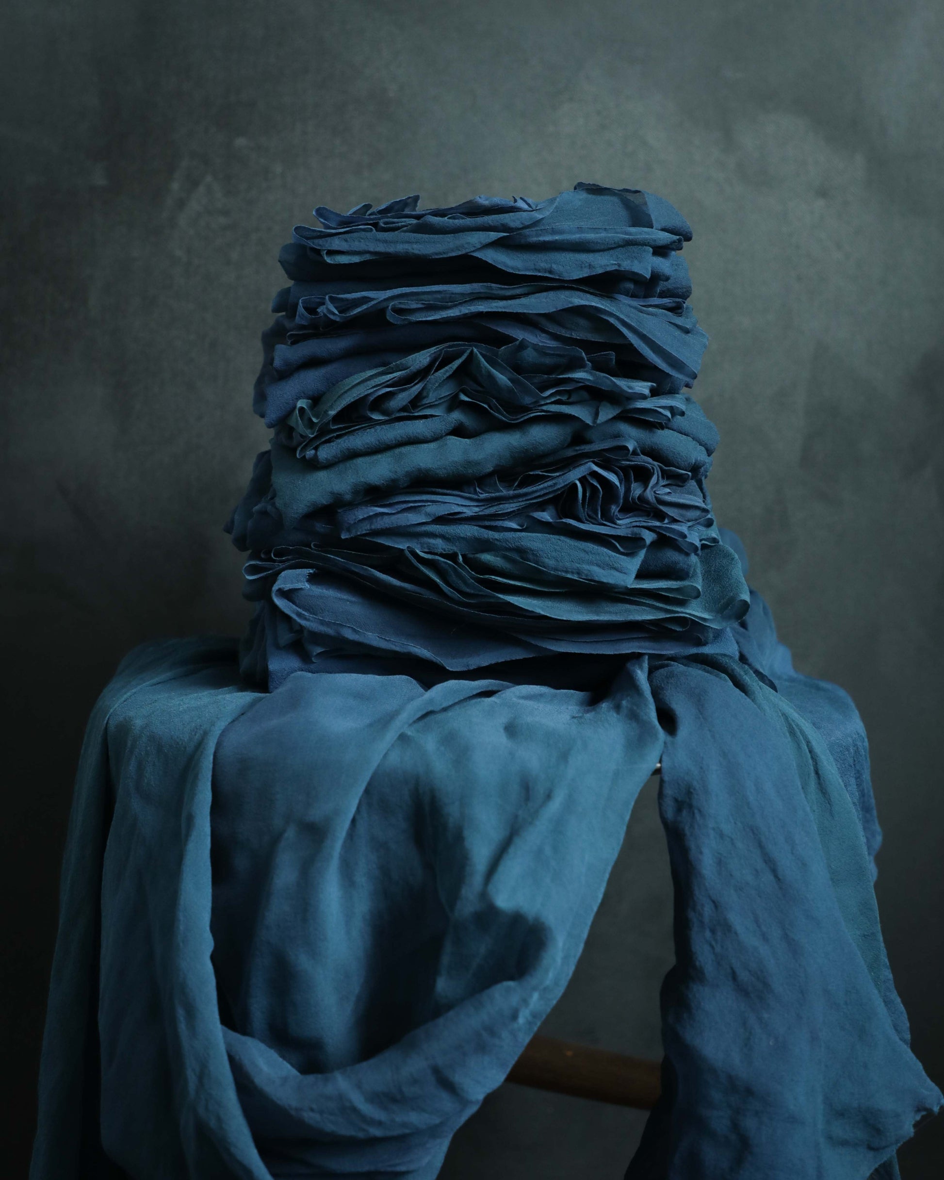 SAPPHIRE. This intense deep indigo blue is like no other! A magicalblue,only possible with nature. As a single layer, light shines through creating a blue veil of color. Gathered and layered the color becomes deeper. Adorn your coastal event table and feel the ocean waves! Our Sapphire sheer silks create the perfect backdrop for your floral centerpiece styling! This deep hue highlights your floral colors and creates a "Dutch Master" feel. Approx. Width / 42 inches