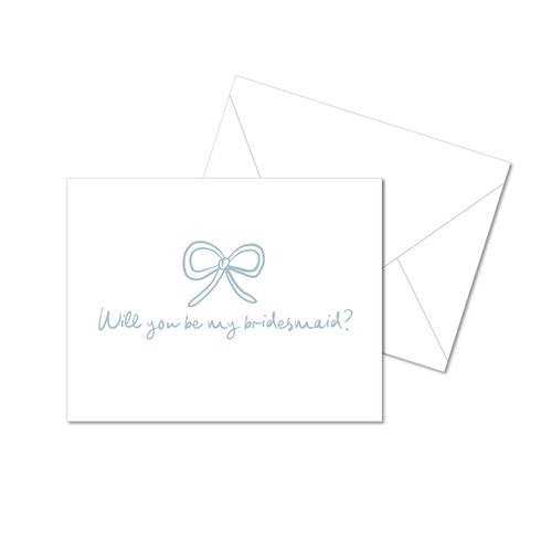 Grab a set of these note cards to ask your besties to be your bridesmaids. Blank on the back for you to add a message on the front or back of the card. Choose your ink color for the bow and message. You may add your name to personalize! Personalized 5.5"� x 4.25"� flat note cards are printed on premium 120# bright white paper, with an eggshell finish for a quality feel. Cards come with your choice of envelope color! Interested in return address printing? Click here to add to your order. Customize your text, ink color, and even your font. Arrive nicely boxed and ready to gift or enjoy! Please order carefully as a proof will not be sent. Prints within 7 business days. Available for shipment or pickup from our studio in Dallas, Texas. Questions? Email us at shop@stampedpaperco.com