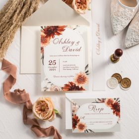 Boho Burnt Orange Floral Wedding Invitation With Foiled Belly Band Swi074