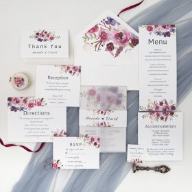 Pink And Purple Floral Wedding Invitation With Vellum Paper And Belly Band Swpi005