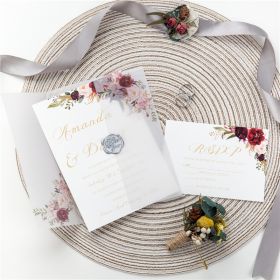 Burgundy Floral Wedding Invitations With Matching Vellum Paper Wrap And Wax Seal Swpi080