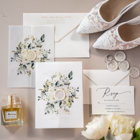 Modern Ivory Floral Wedding Invitations With Vellum Wrap And Ribbon Swpi125