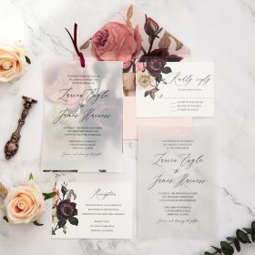 Moody Burgundy And Blush Floral Vellum Overlay Wedding Invitation Swvl020