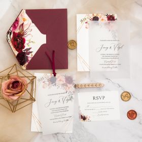 Affordable Burgundy And Blush Floral Wedding Invitation On Vellum Paper Swvl022