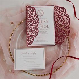 Vintage Burgundy Monogram Laser Cut Wedding Invitations Swws126