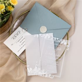 Simple White Floral Frame Acrylic Wedding Invitation With Uv Printing Vellum Wrap Sapv002