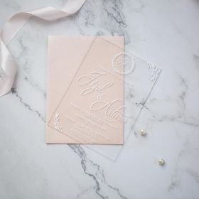 White Monogram Calligraphy 1Mm Acrylic Wedding Invitations Swal067