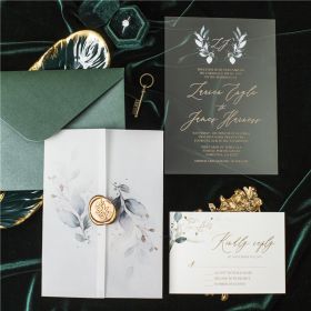 Elegant Monogram Acrylic Wedding Invitation With Vellum Wrap And Wax Seal Sapv008