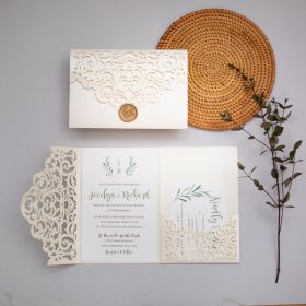 Elegant Ivory Laser Cut Pocket Wedding Invitations With Greenery Monogram Swws185